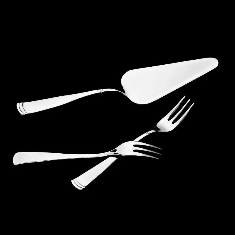 Набір для торта Болонья складається з блюда, лопатки і дванадцяти виделок. Блюдо прикрашено простим візерунком на матовій поверхні бортів, а його центральна частина відполірована до дзеркального блиску. Матеріал, з якого виготовлені предмети – це так звана медична сталь. В її склад входить 18% хрому і 10% нікелю. Така сталь майже повністю позбавлена мікропор, тому мікроби не