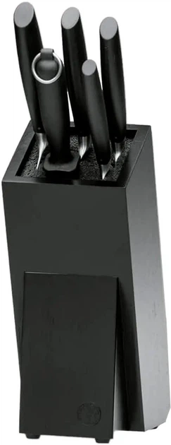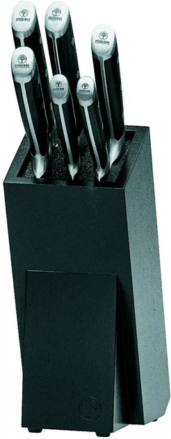 Країна походження бренду: Німеччина; Матеріал рукояті: пластик; Марка сталі: X50CrMoV15; Підставка: Матеріал леза: сталь; підставка; Ніж для хліба (см): 22; Ніж для нарізки (см): 20; Ніж для очищення (см): 9; Сантоку (см): 16; Кухарський (см): 20; Універсальний (см): 11; для хліба; для нарізання; для очищення; сантоку; кухарський; універсальний; Предметів в наборі (шт.): 6
