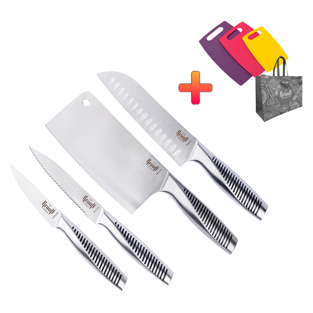 Набір із 3-х ножів Profi Krauff та кухонна сокирка + ПОДАРУНОК:набір кухонних дошок та сумка шопер