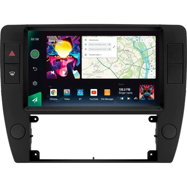 підсвічування: RGB; Вибір кольору підсвітки; Діапазони тюнера: FM/AМ;ять (ГБ): 64; Вбудована пам' Для камери заднього виду; AUX на передній панелі; Лінійний вихід: 2; Підключення АС: ISO/RCA; DSP процесор; Кількість каналів: 4; Потужність на канал (Вт): 45; Підтримка модему: 4G (LTE) ready; Wi-Fi модуль; Bluetooth; Мультимедіа: GPS-модуль; Сенсорний екран; Діагональ дисплея ("): 9; Підтримка FLAC; підключення Android; підключення iPod/iPhone; USB-накопичувач (тиловий); USB-накопичувач (фронтальний);яті: microSD; Панель: Типи носіїв: карти пам' Штатна магнітола для: Volkswagen Passat B5 (2000-2005); Укорочений корпус; Монтажний розмір: штатна; Область застосування: автомобільна