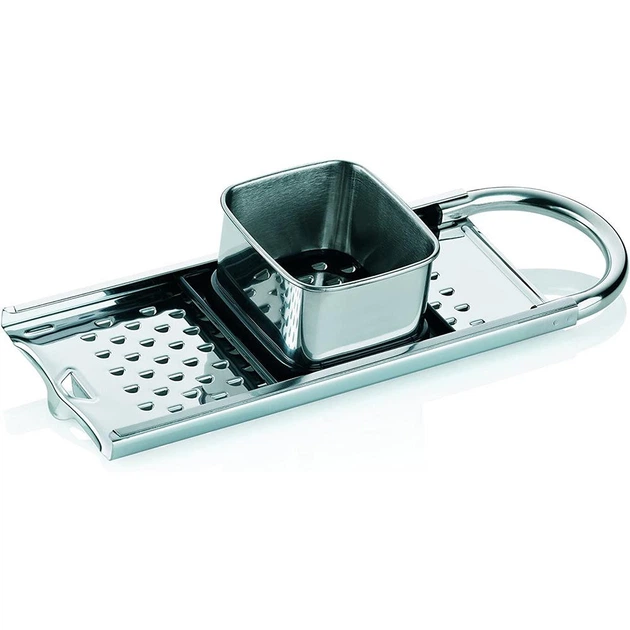 Формат/Настільна|Матеріал робочої поверхні/Нержавіюча сталь|Колір виробника/Сріблястий|Бренд/Kela|Можливість миття в посудомийній машині/Так|Гарантійний термін/1 рік|Призначення/Для дерунів, Універсальна|Особливості/4 робочих поверхні, Шатківниця|Країна виробництва/Німеччина