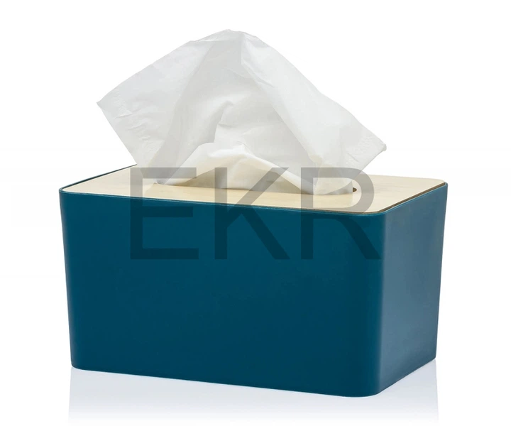 Серветниця пластмасова на стіл прямокутна з кришкою, з Деревоволокнистою кришкою - Синій (APL0483)