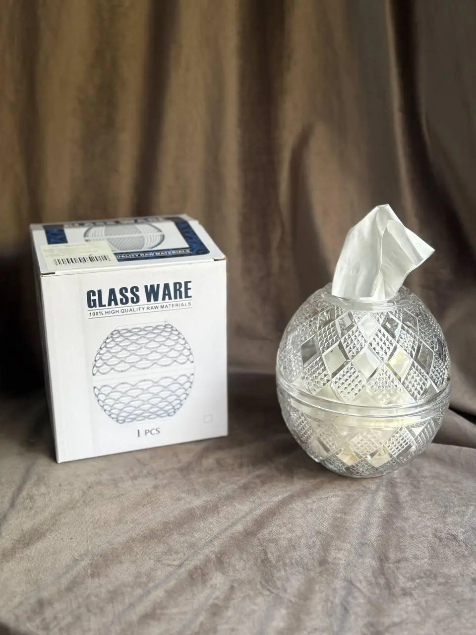 Серветниця скляна Yiwu HP-4-110 з рельєфною поверхнею настільна 17x15 см Прозорий