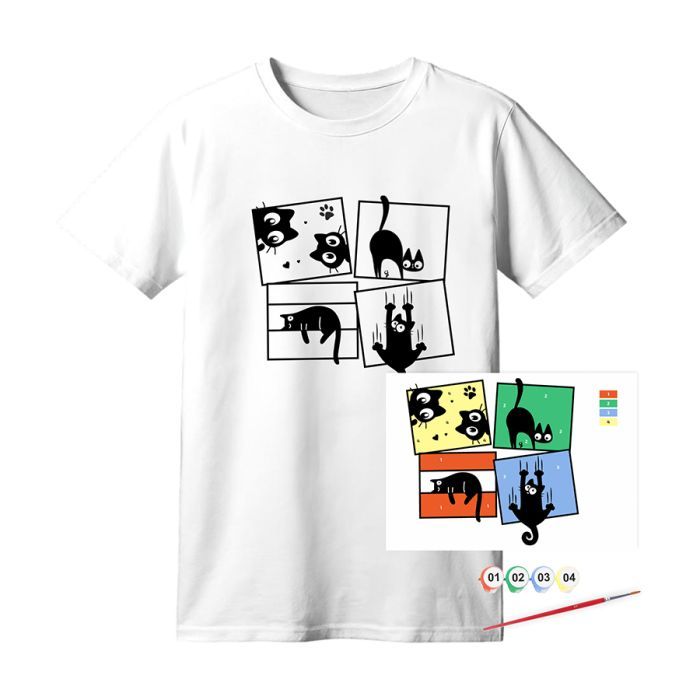 Набір для творчості Rosa футболка-розмальовка, Black Cats, бавовна 100, розмір XS (4823098544852) 4823098544852