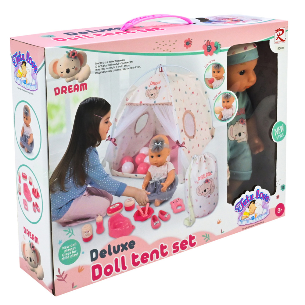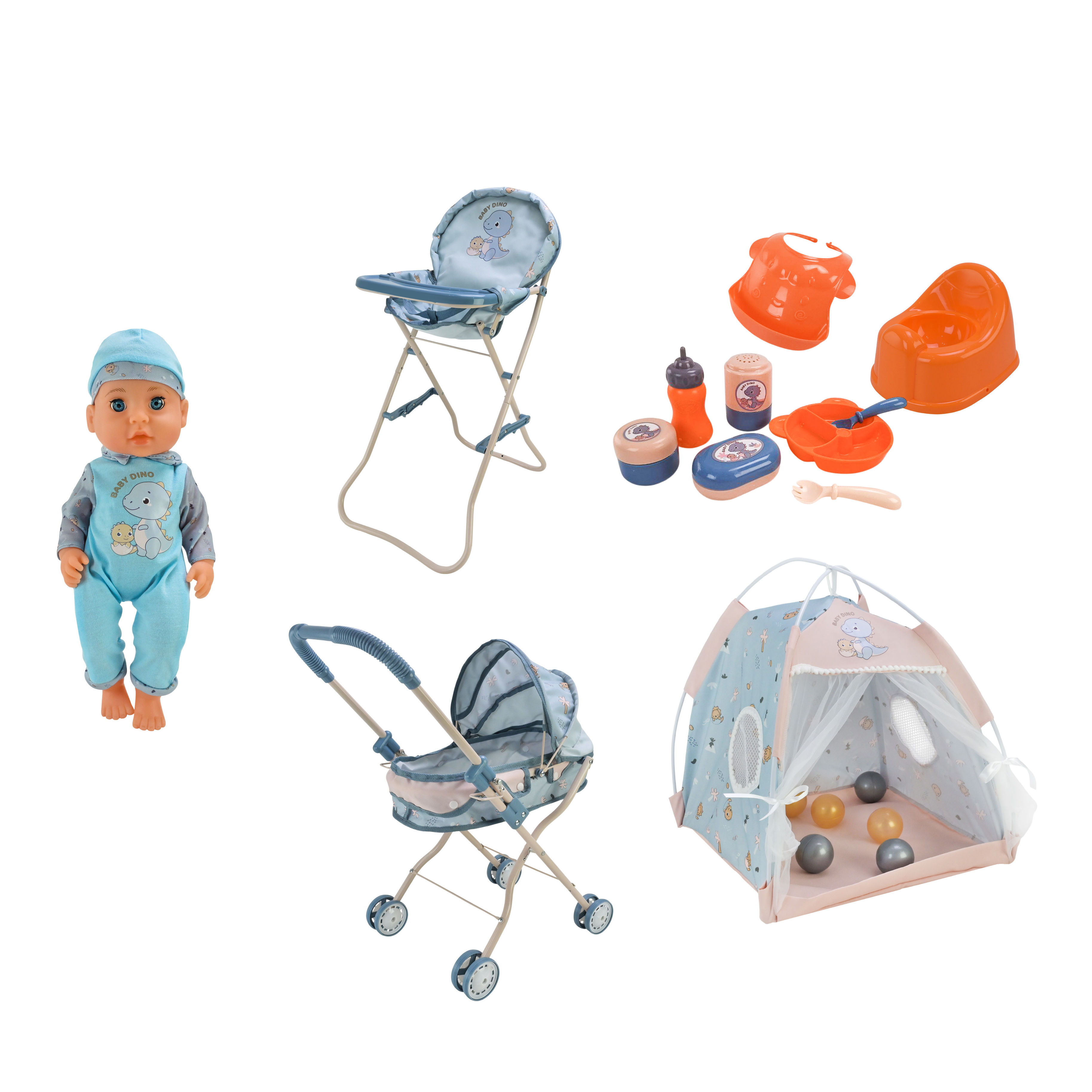 Зануртесь у чарівний світ уяви та веселощів! Цей ігровий набір з лялькою та різноманітними елементами і аксесуарами створений для відтворення справжньої гри “як у дорослих” — дитина може доглядати за пупсом, годувати його та вкладати спати.Цей набір є надзвичайно цінним для розвитку дитини і вчить її турботливості, комунікативним навичкам та уяві.Комплектація:Пупс в одязі;Сумочка для палатки;Палатка;Іграшкові кульки;Горщик, пляшка, тарілка з ложкою і виделкою та інші ігрові аксесуари.Інтерактив:Пупс може пити через пляшку, в яку потрібно налити воду.Гігієнічні навички у грі — садимо на горщик, лялька пісяє, що робить гру реалістичною.
