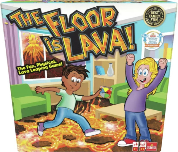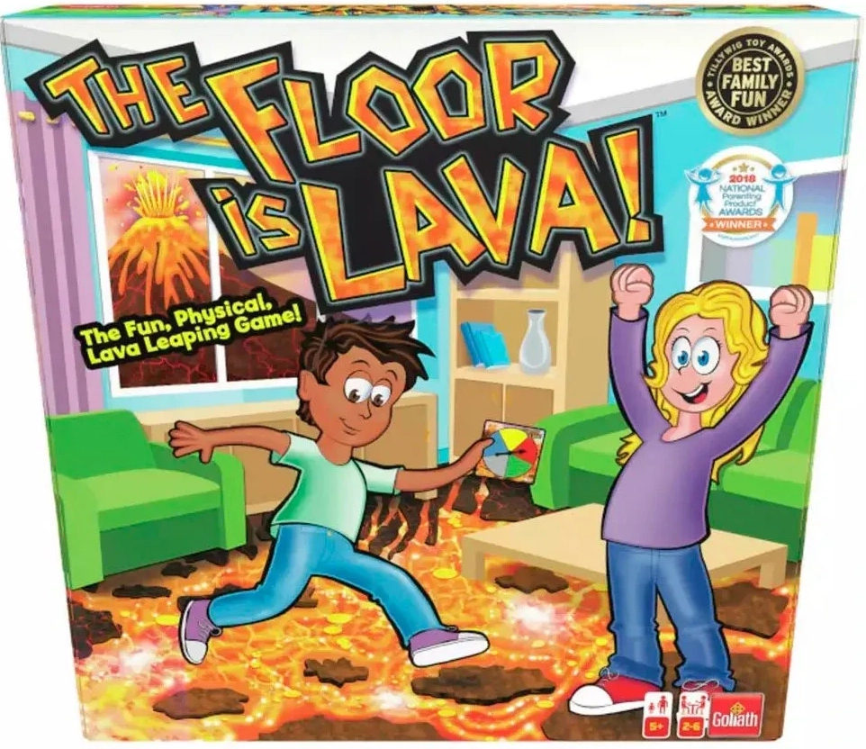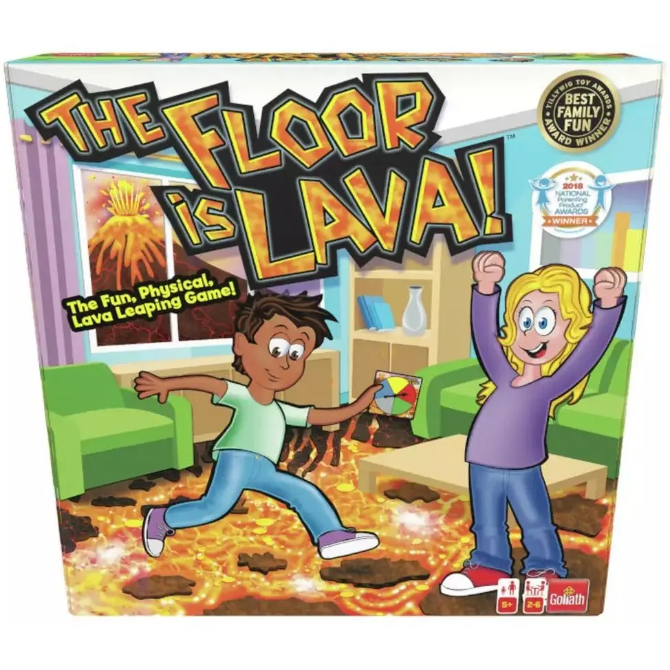 Настільна гра Goliath Настільна гра Goliath «Лавова підлога» — це веселе та динамічне заняття для всієї родини, яке перетворює кімнату на справжнє випробування на спритність і уяву. Гравці мають пересуватися м’якими різнокольоровими платформами, уникаючи «лави» та виконуючи завдання, що визначаються крутилкою. Така активність дарує багато сміху й емоцій, а також розвиває