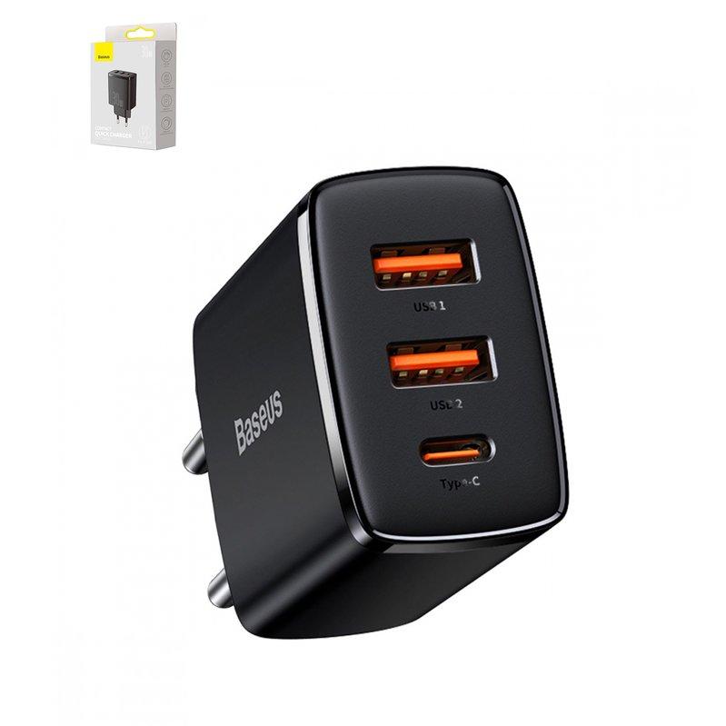 Сетевое зарядное устройство для Baseus Compact, 30 Вт, Quick Charge, черный, 3 порта, #CCXJ-E01 909583