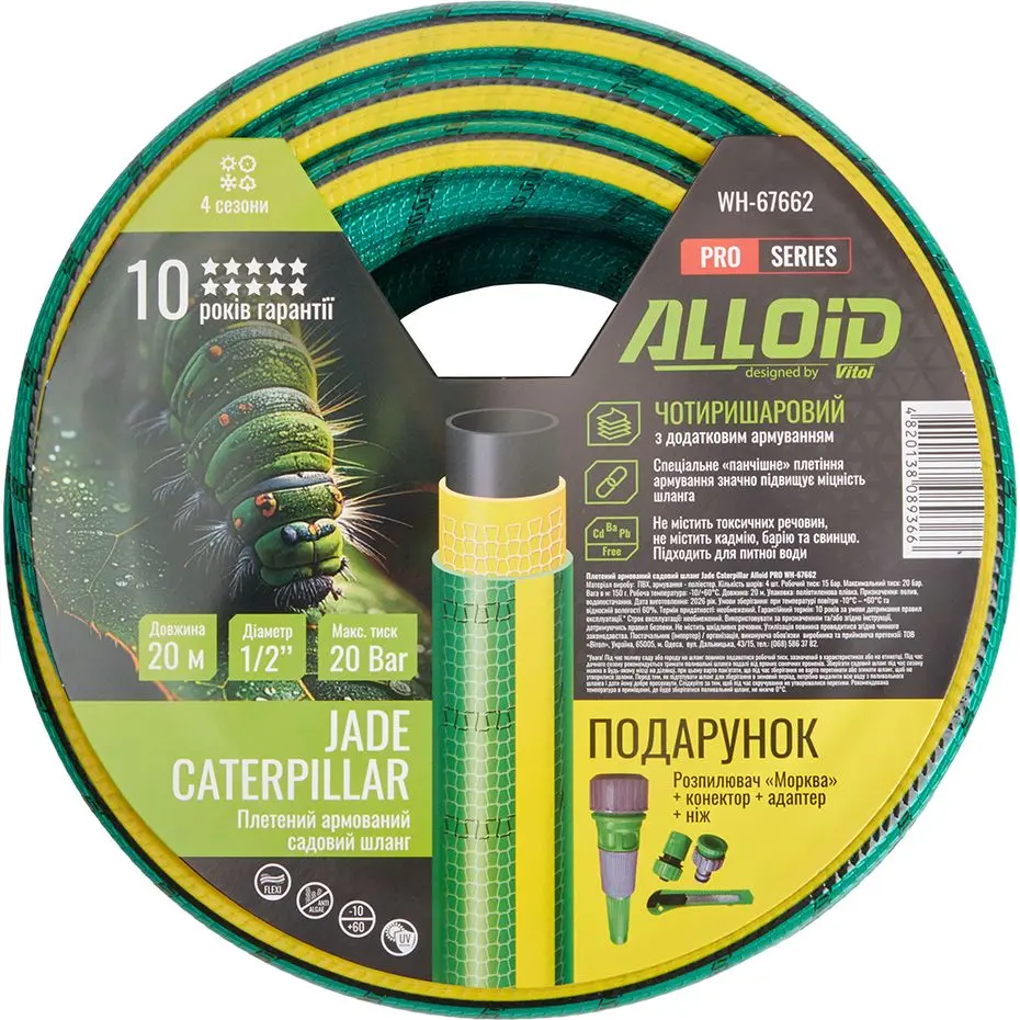Шланг армований 4-х шаровий, "JADE CATERPILLAR" 1/2" 20 м + подарунок, серія Alloid Pro