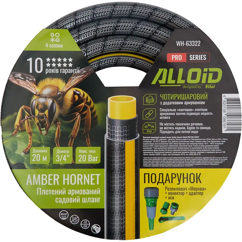 Шланг армований 4-х шаровий Alloid Building Tools Amber Hornett 3/4" 20 м (WH-63322)