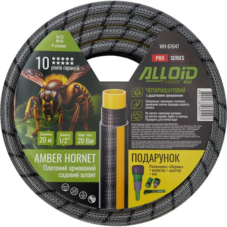 Шланг армований 4-х шаровий Alloid Building Tools Amber Hornett 1/2" 20 м (WH-67647)