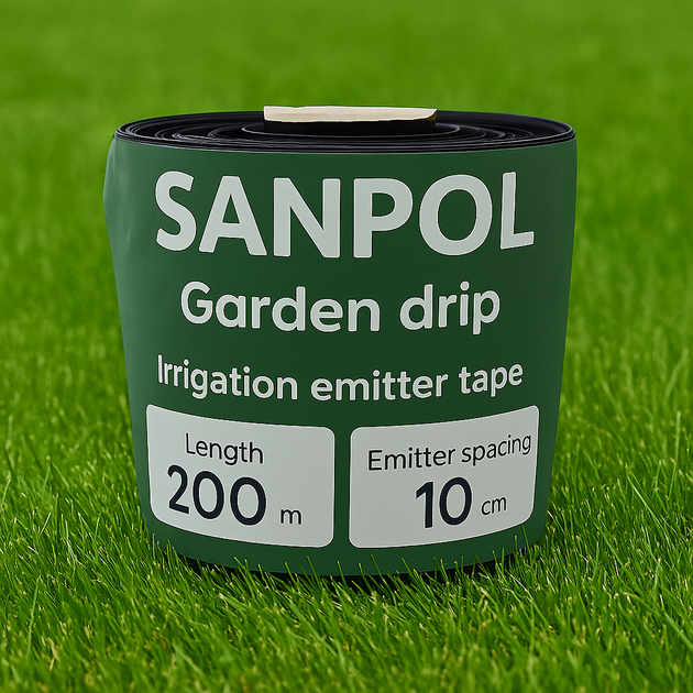 Стрічка емітерна для крапельного поливу SANPOL 7 mil 10 см, бухта 200 м