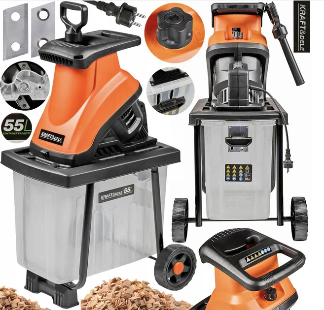 Садовий подрібнювач гілок 3000W Kraft&Dele гілкоподрібнювач 45 мм дробилка для гілок із подвійними ножами