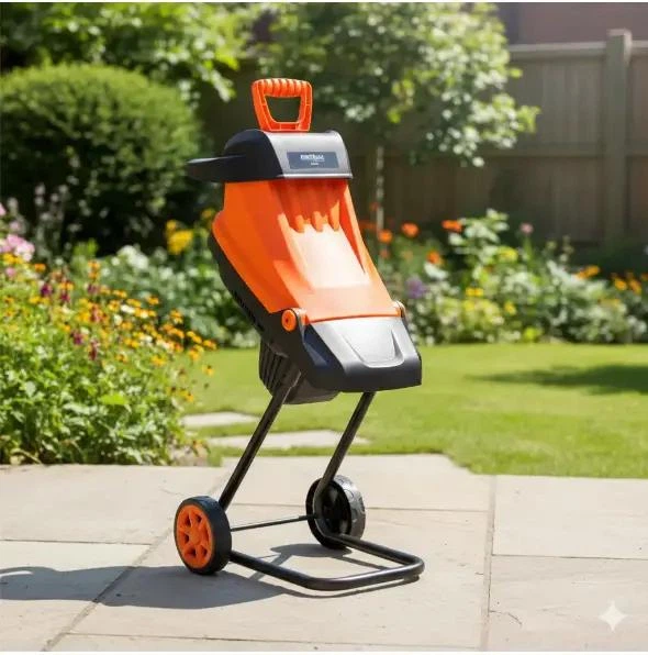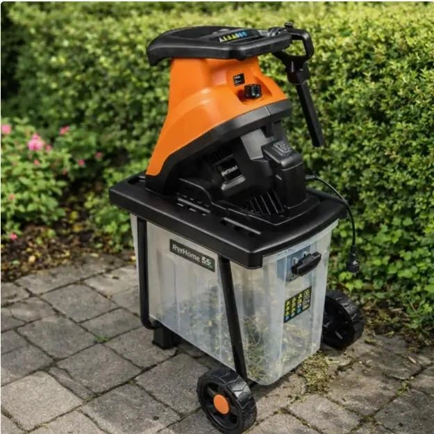 Електричний подрібнювач гілок 3000 Вт, ножовий механізм, діаметр гілок до 45 мм, 4200 об/хв, переносний садовий шредер з тра