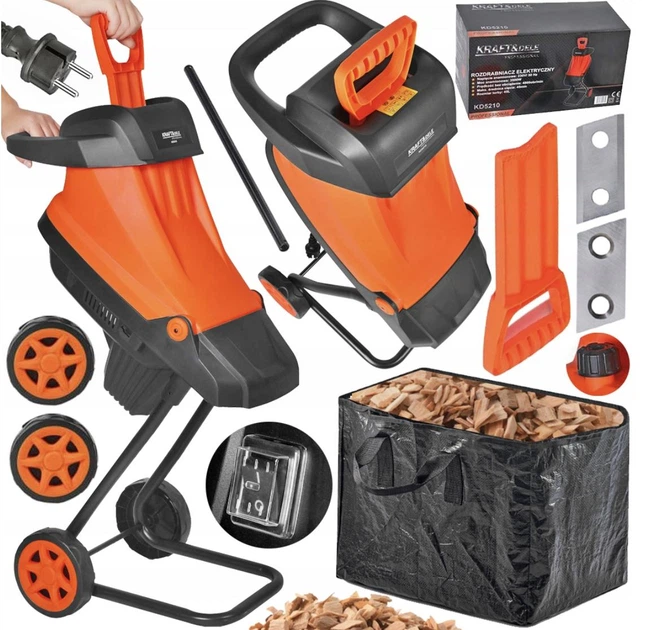 Подрібнювач гілок садовий, електричний 3500W KRAFT&DELE KD5210 для гілок до 45 мм, з подвійними ножами