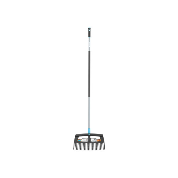 Великі граблі для листя IDEAL Для згрібання листя, трави та інших садових відходів на невеликих ділянках, діють як скребок, можна використовувати для перенесення листя. Алюмінієвий, легкий, високоміцний прямий вал. Універсальний адаптер дає змогу швидко замінити головки, забезпечуючи дуже надійне і стабільне з'єднання. Гнучка, змінна головка з міцного пластику унікальної форми, що зменшує забивання зубів, забезпечує плавну, ефективну та комфортну роботу. Отвір для підвішування для зручного зберігання.