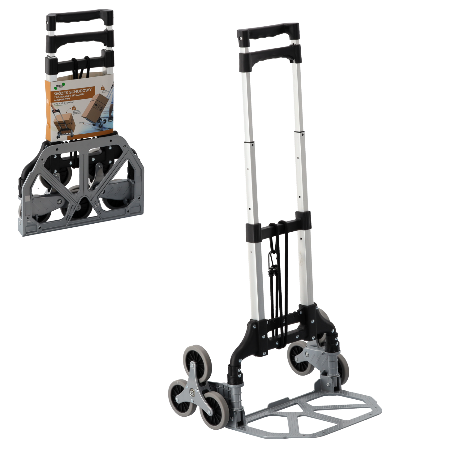 - Матеріал ручки Алюміній - Матеріал рами Алюміній - Матеріал нижньої пластини Алюміній - Розміри (розкладені) 47,5 × 47,5 × 100 см - Розміри (складені) 10,5 × 38,5 × 65 см - Нижня тарілка 37,5 × 47,5 см - Колеса PP + TPR (поліпропілен + термопластична гума) - Розмір колеса 10 × 2 см (діаметр × ширина) - Система 3 колеса для легкого пересування по сходах - Вантажопідйомність на рівній поверхні 70 кг - Вантажопідйомність по сходах 35 кг