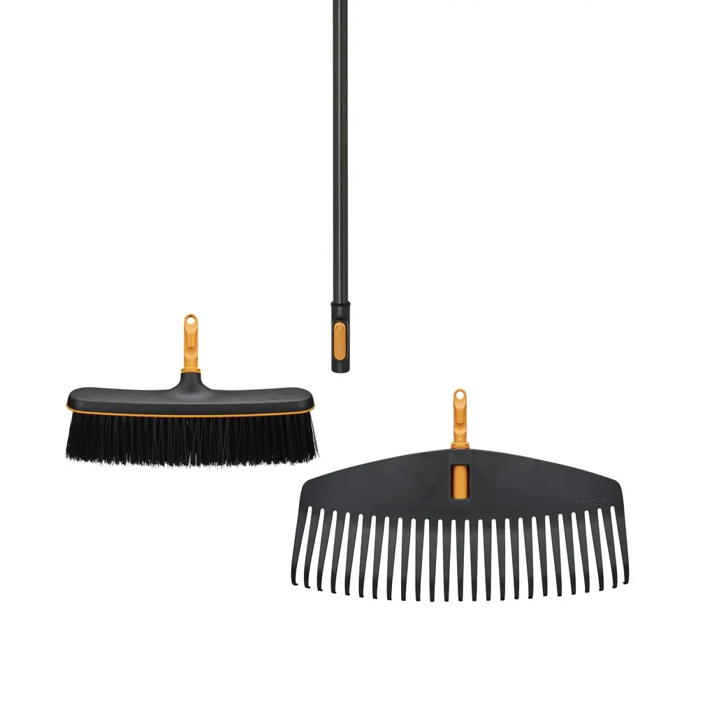 Граблі пластикові 51 см + щітка 34 см Fiskars OneClick + ручка 161 см (1080715)