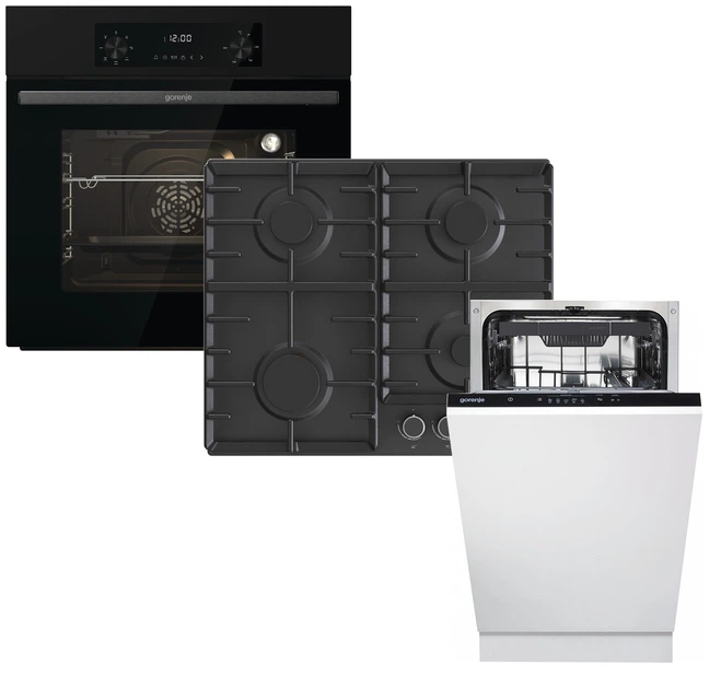 Духова шафа електрична Gorenje BO635E1B + Варильна поверхня газова Gorenje G642AB + Вбудована посудомийна машина Gorenje GV1