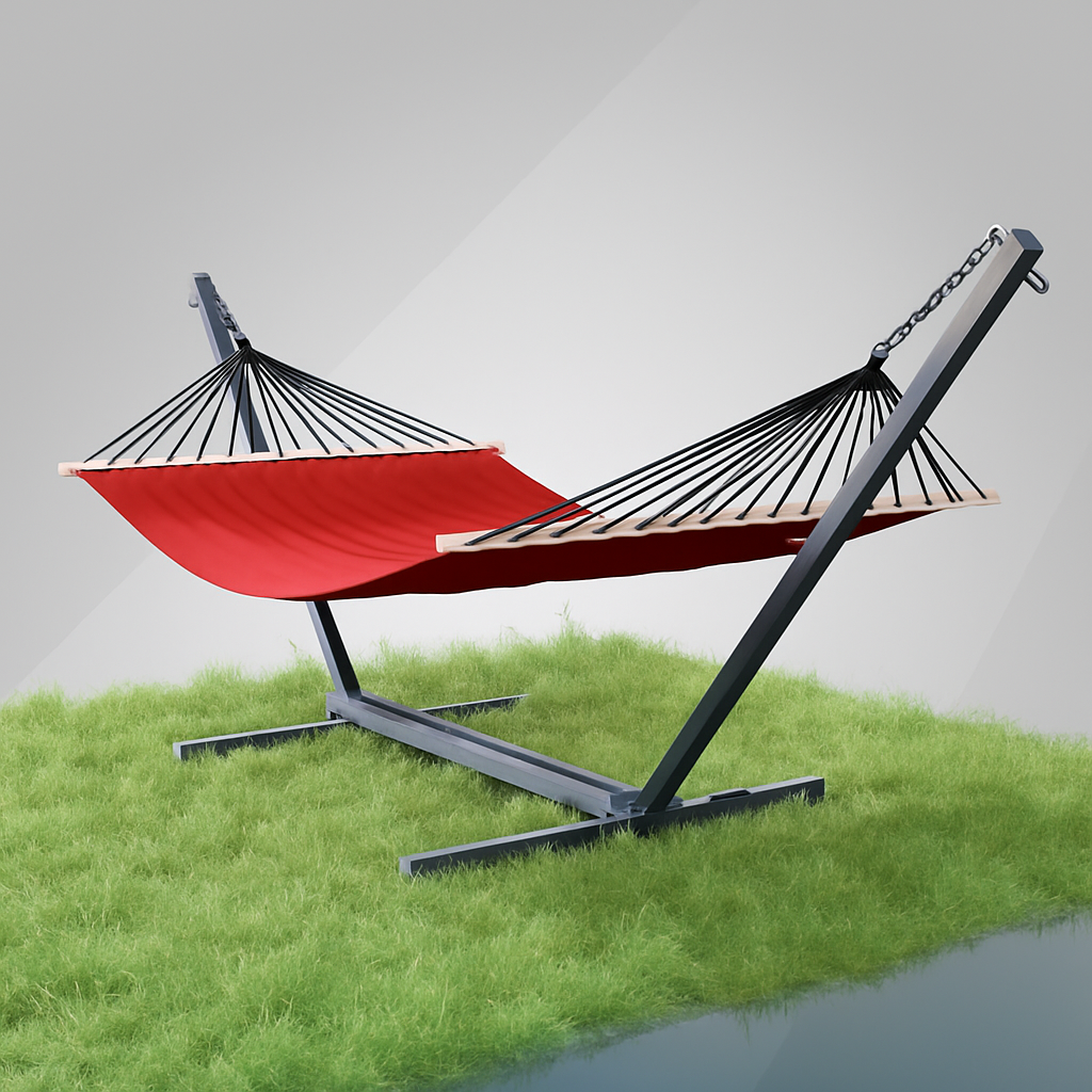 Стійка для гамака + Гамак з планкою двомісний WISH червоний XXL 200х150 WCG W-5050H08R-2