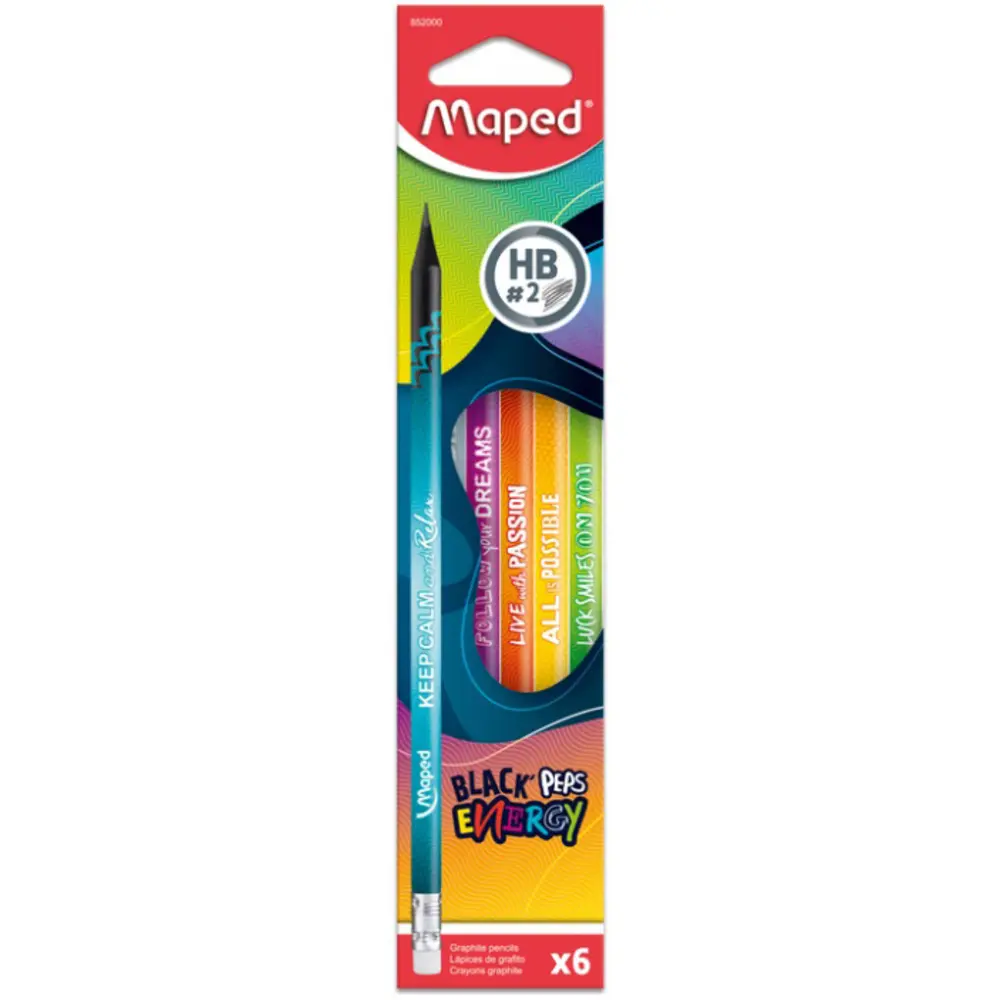 Набір графітових олівців Maped Black Peps Eenergy з гумкою HB 6 шт. (MP.852000)