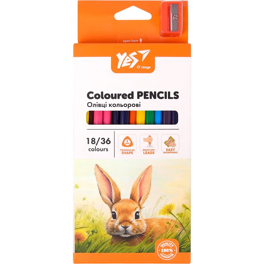 Олівці кольорові Yes Orange Line з точилкою 36 кольорів 18 шт. (290752)