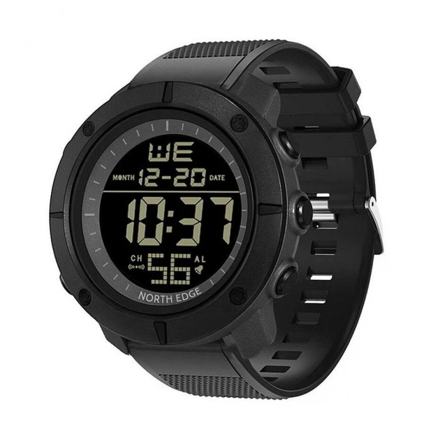Чоловічий водостійкий тактичний годинник North Edge Mach New (Чорний)