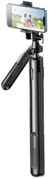 Тип - монопод для смартфона, Тип підключення — бездротове (Bluetooth), Спуск затвора — на пульті(Bluetooth)/кнопка, Діапазон довжини - 44 — 210 см, Особливості — обертання на 360°, сумісний зі смартфонами шириною 6 — 10 см
