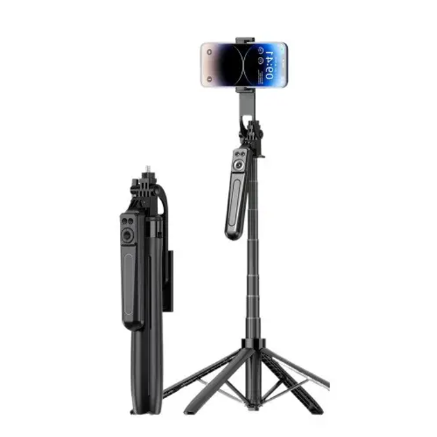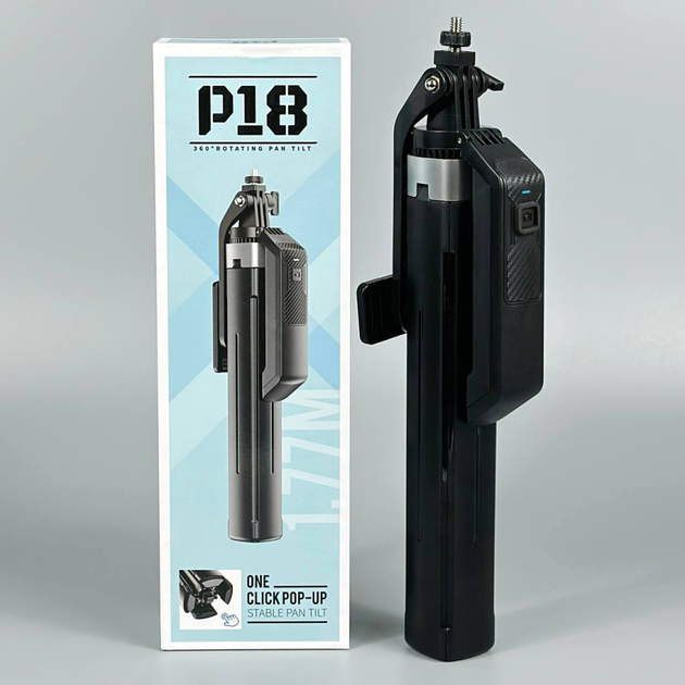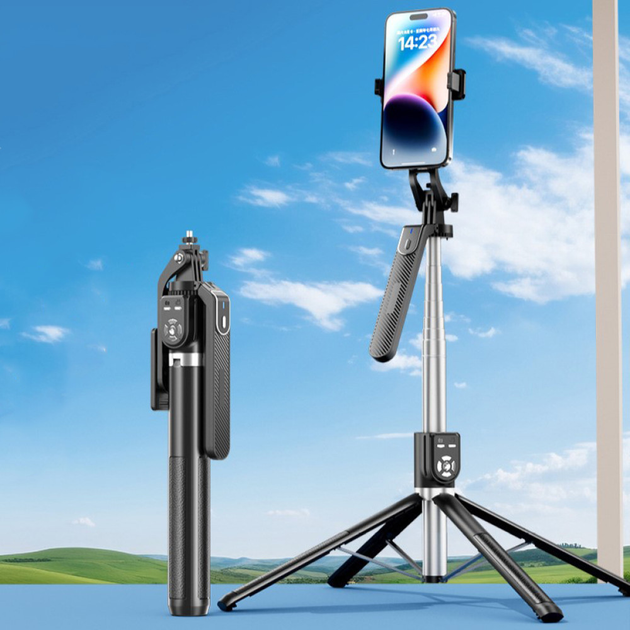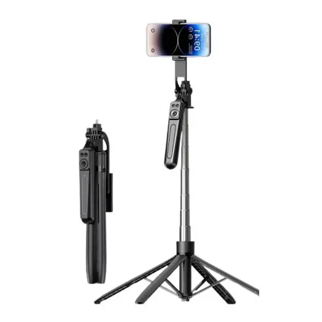 Штатив-трипод 2.2м для камери, Gopro або телефону з пультом ДУ P180 Max |обертання 360 °, Bluetooth| Чорний