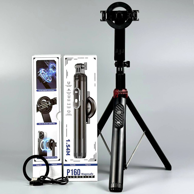 Монопод трипод P160 2iв1 + Magnetic штатив Bluetooth, висота 15.4см Чорний 59119