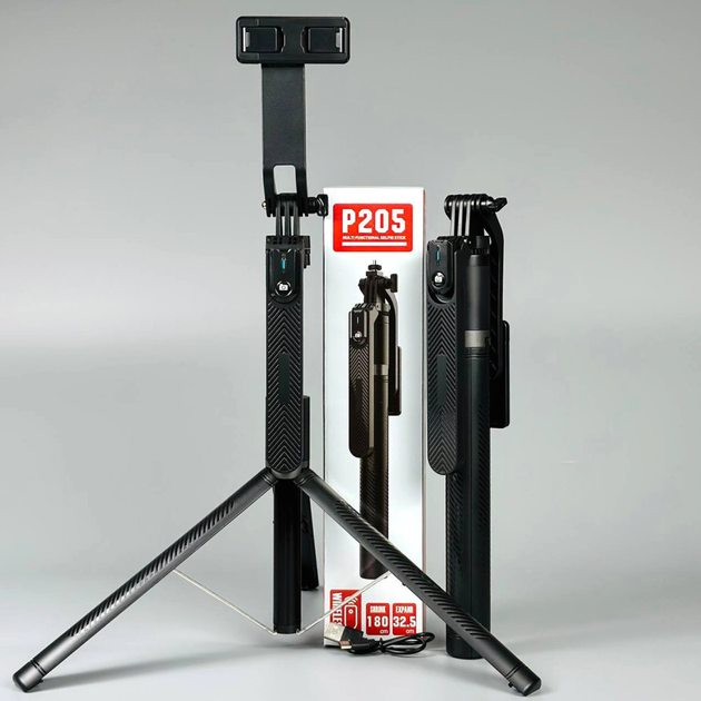 Трипод-монопод для селфі з пультом ДК P205 Aluminum на штативі 1.8м Bluetooth Чорний 58091