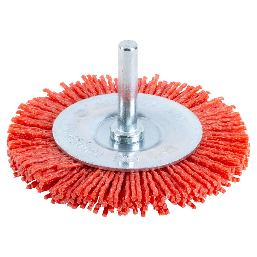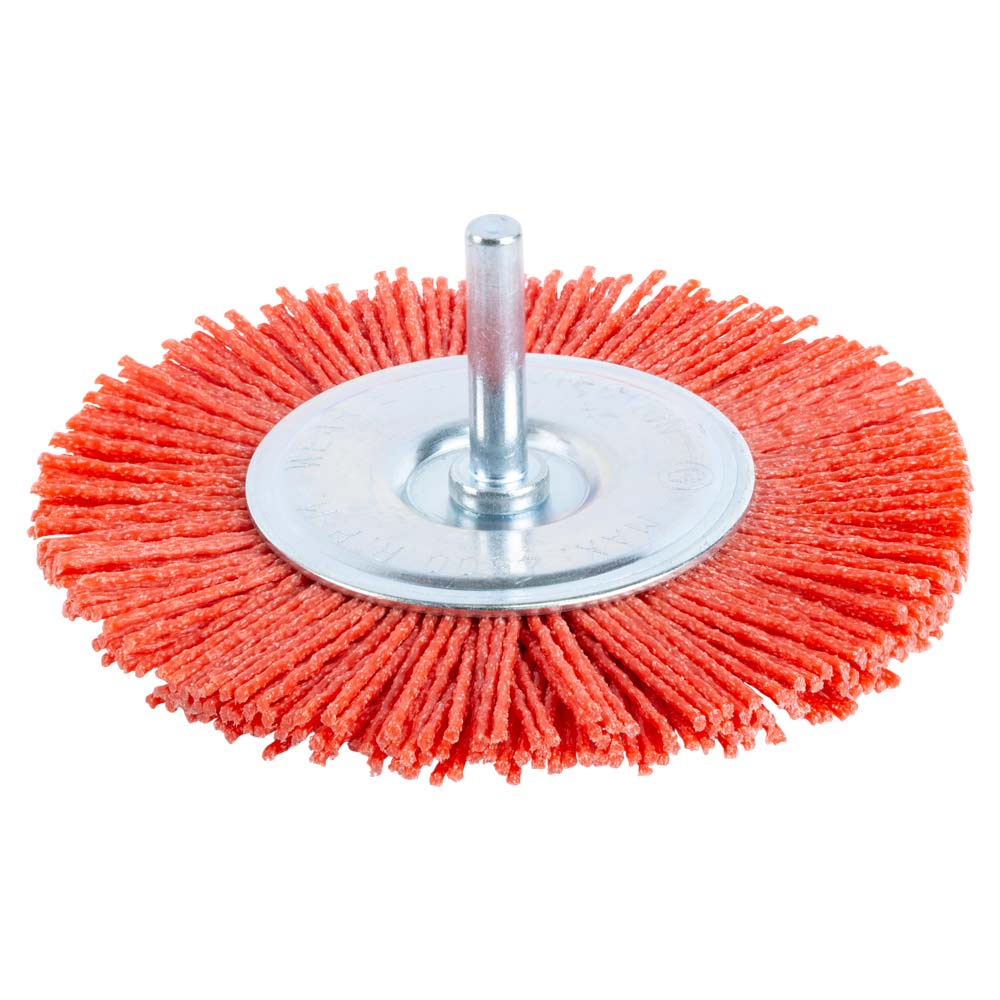Для очищення та м'якого полірування дерева та листового металу, дрібнозернисті нейлонові щетини гарантують щадну обробку. Висота накладки 10 мм. Діаметр дроту 0,7 мм. Матеріал накладки щітки - нейлоновий дріт. Довжина хвостовика 25 мм. Максимальна швидкість обороту 4500 об/хв.