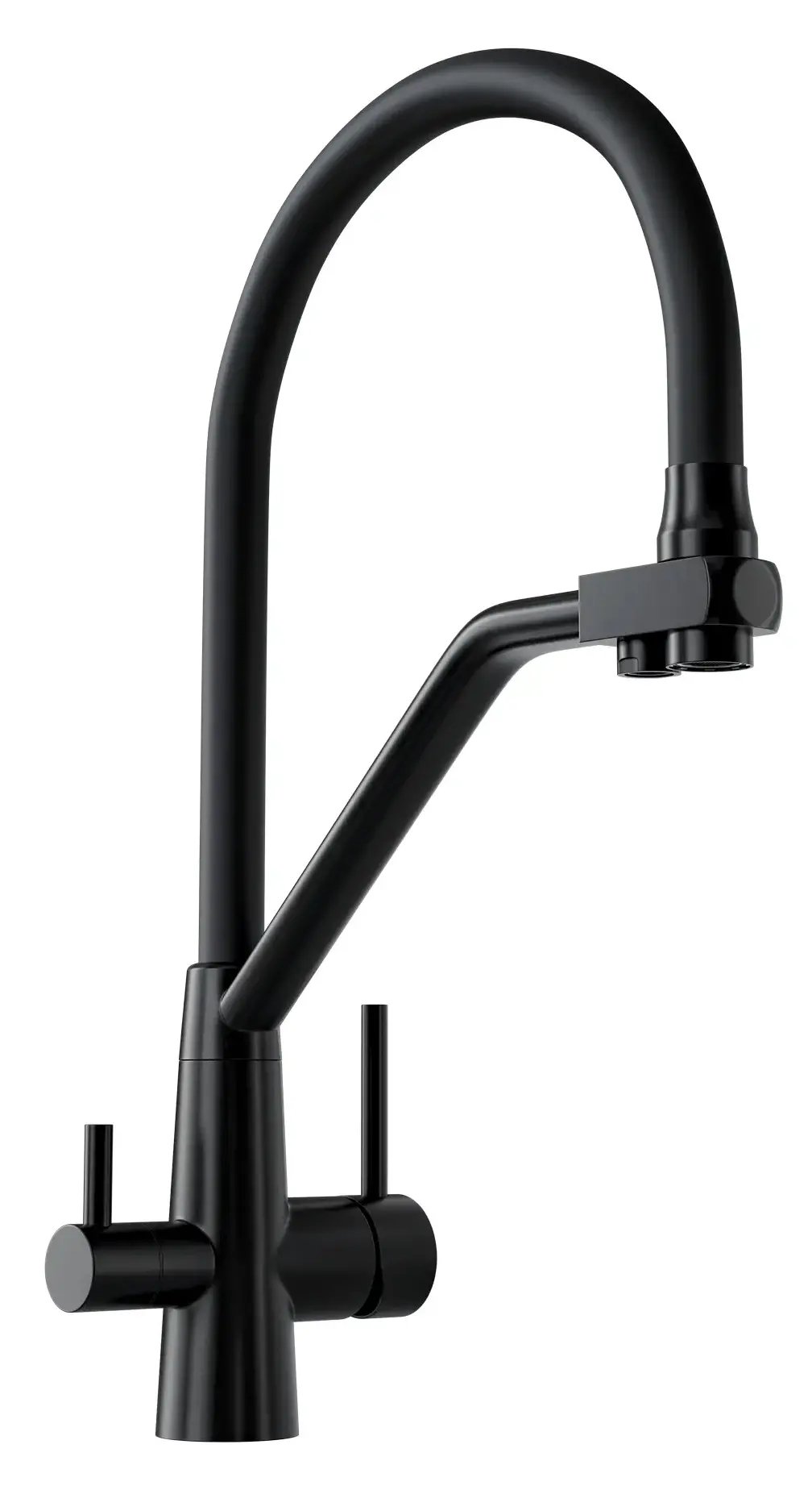 Гарантія виробника: 2 роки; Країна походження бренду: Польща; Вага (кг): 2.8; Висота змішувача (мм): 444; пофарбований: білий, чорний, графіт; під золото; мідь; нержавіюча сталь (матова); Покриття корпусу: хром; Підведення води: Підведення води: шланги; Тип монтажу: настільний (горизонтальний); Запірний клапан: керамічний; Висота струменя (мм): 250; Глибина струменя (мм): 216; Поворотний; Висувний (знімний); Форма: дугоподібний; Тип змішувача: одноважільний (джойстик); Призначення: для кухні