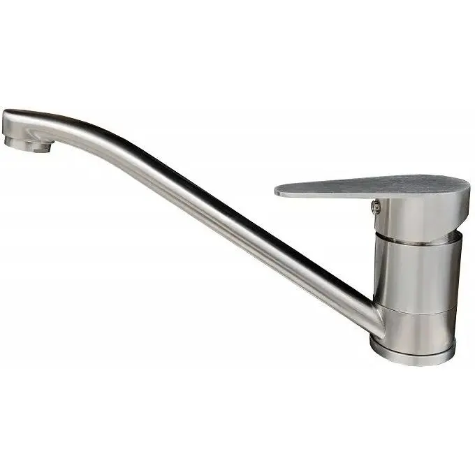 Гарантія виробника: 10 років; Країна походження бренду: Румунія; Висота змішувача (мм): 123; Покриття корпусу: нержавіюча сталь (матова); Підведення води: Підведення води: шланги; Тип монтажу: настільний (горизонтальний); Запірний клапан: керамічний; Висота струменя (мм): 73; Глибина струменя (мм): 139; Поворотний; Форма: під кутом загнутий; Тип змішувача: одноважільний (джойстик); Призначення: для кухні