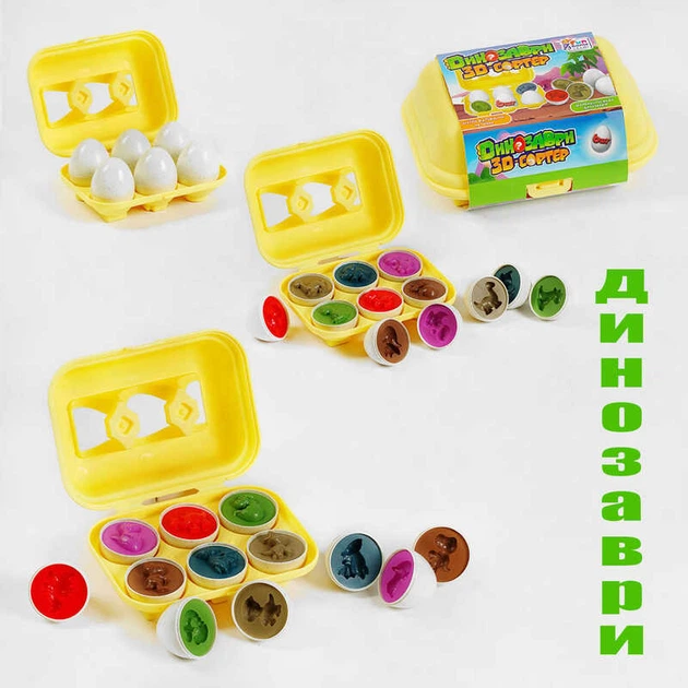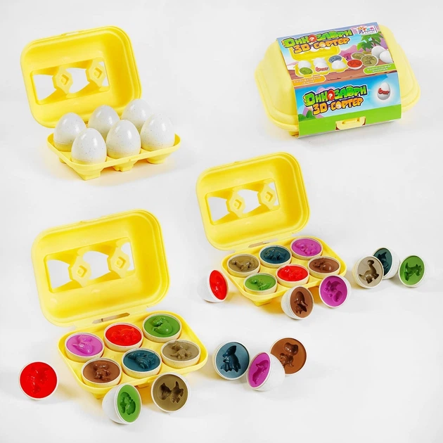 3D сортер "Динозаврі" 41750 2 види, "4FUN Game Club", "Яєчний лоток", 6 штук у коробці