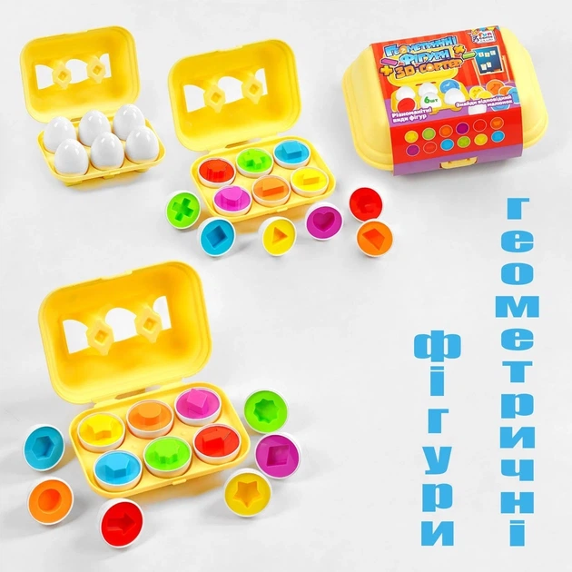 Сортер Яєчний лоток Фігури 44152 4FUN Game Club 6 штук в лотку (6945717436718) Вид 2