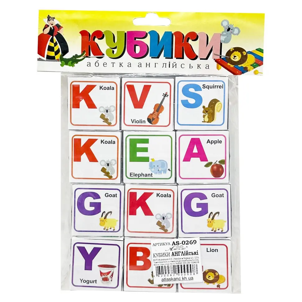 Дитячий розвиваючий набір "Кубики Англійська абетка" Атлас AS-0269, Т-1022м 12 штук