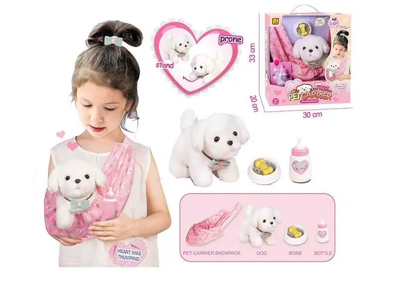 М’яка іграшка Цуценя, звук серцебиття, сумка-переноска, пляшечка, миска, 30x20x33 см