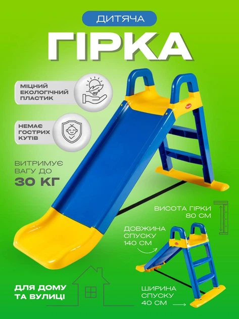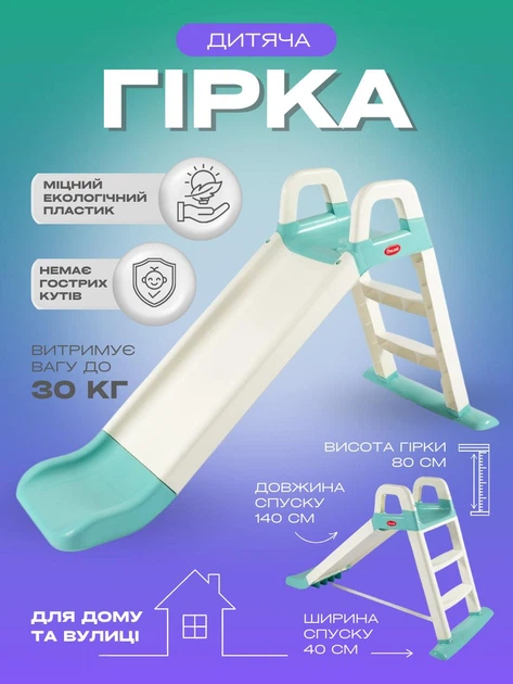 Дитяча пластикова гірка для катання дітей і малюків для будинку вулиці та дитячого майданчика спуск зі сходами 140 см від 1.