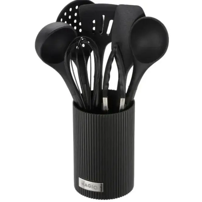 Набір кухонного приладдя Magio MG-1128 із підставкою 8 предметів Чорний