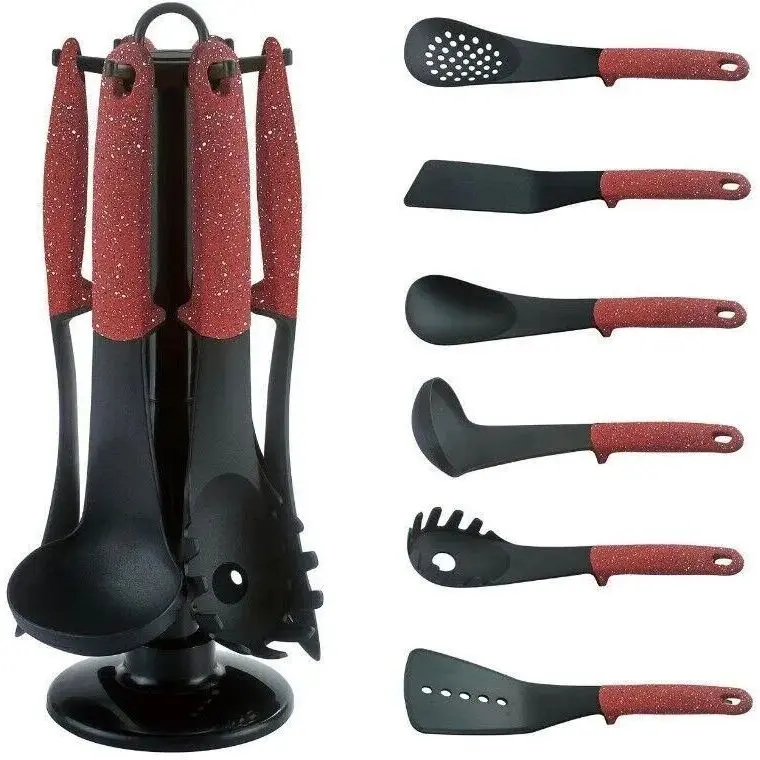 Набір кухонного приладдя на стійці Royalty Line RL-U06 із 7 предметів червоний