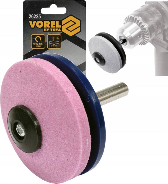 Точилка для ножів, ножиць, дискова 50мм, для дриля шпиндель 6мм. Vorel 26225