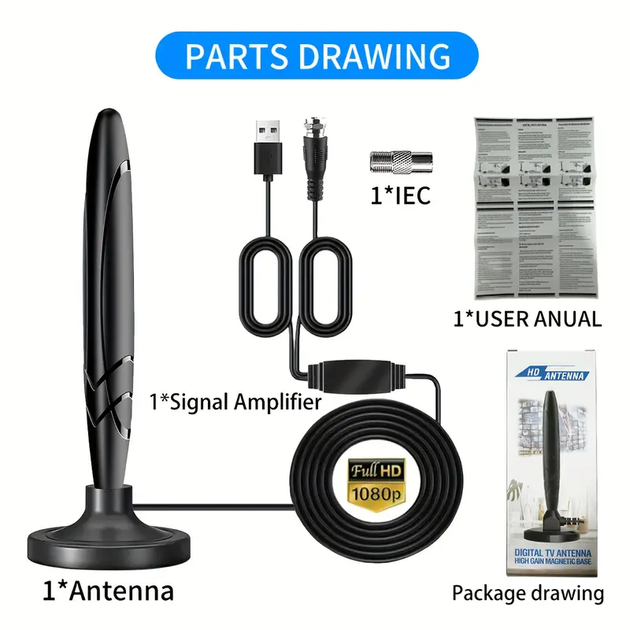ТВ-антена телевізійна антена кімнатна Високопродуктивна HDTV, DVB-T2, DTMB, ATC, ISDB-T, DAB/F