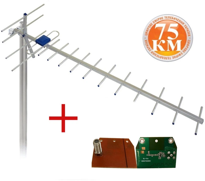 Зовнішня ТВ антена для Т2. Дальнобій 75 км + плата посилення