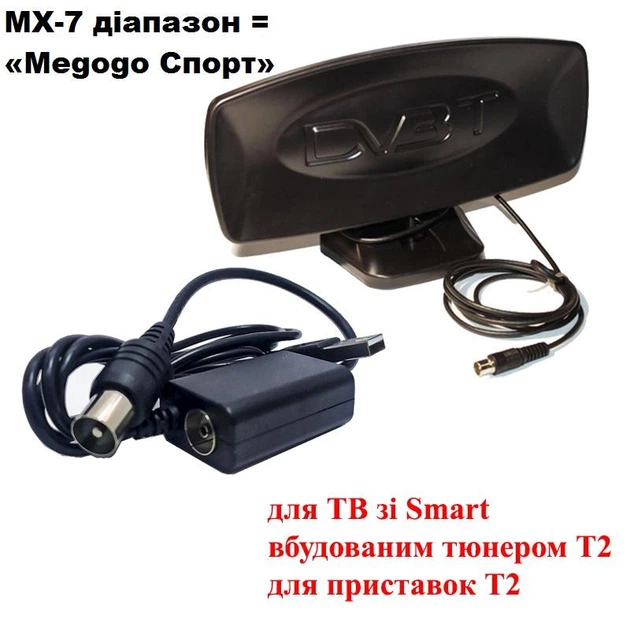 Антена кімнатна з підсилювачем до 35 км AT-1K + MX-7 метровий діапазон і інжектор USB для TV з Т2 , Smart TV