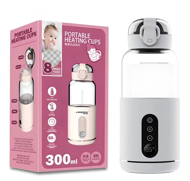 Портативний підігрівач пляшечок JR01 для малюків 300 мл з регулюванням температури та дисплеєм USB 5200 мАг Pink