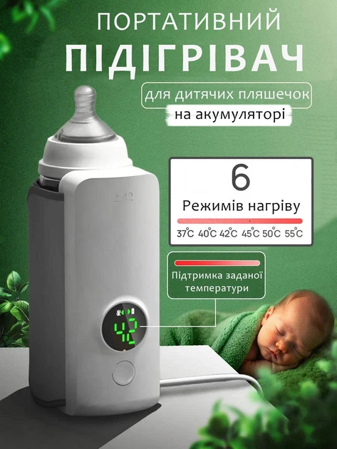Портативний підігрівач для дитячих пляшечок на акумуляторі Warmer Pro бездротовий нагрівач бутилочок компактний для прогулян