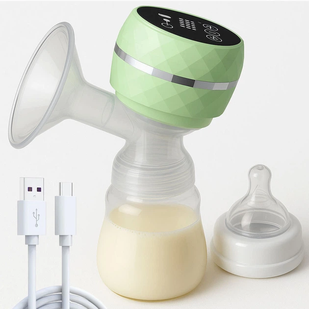 Електричний молоковідсмоктувач двофазний з пляшкою 150мл акумуляторний USB зелений Zhibao