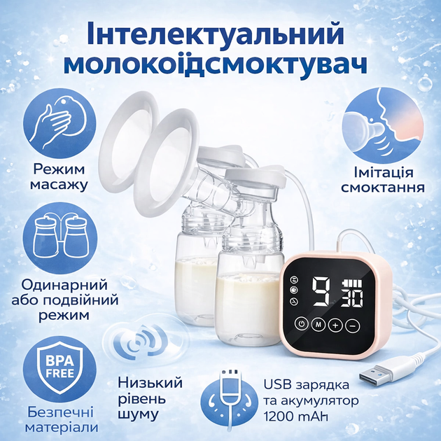 Молоковідсмоктувач подвійний акумуляторний електронний автоматчиний післяродовий апарат для молока масаж грудей тихий режим