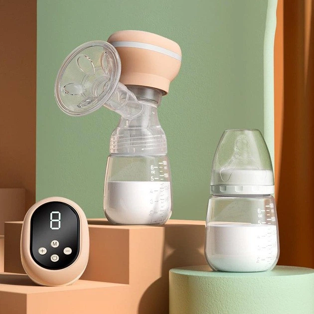 Компактний двофазний електричний молоковідсмоктувач з акумулятором без рук персиковий