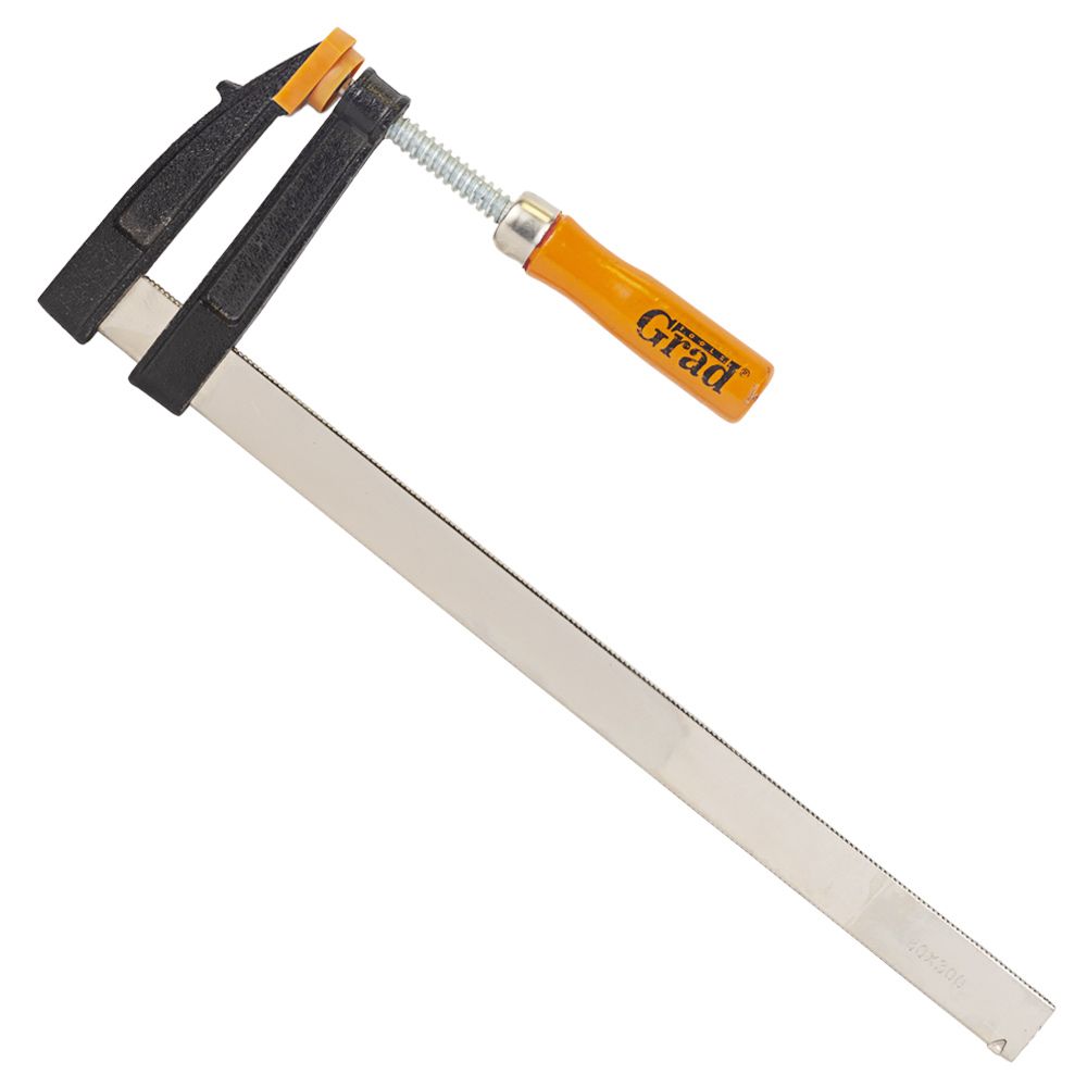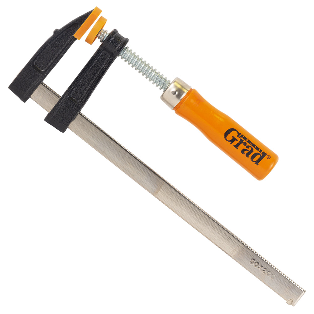Колір: Помаранчевий, Чорний; Ширина: 8; Довжина: 30; Виробник: Grad; Вид струбцини: F-подібна; Країна виробника: Китай; Механізм затискання: Гвинтовий